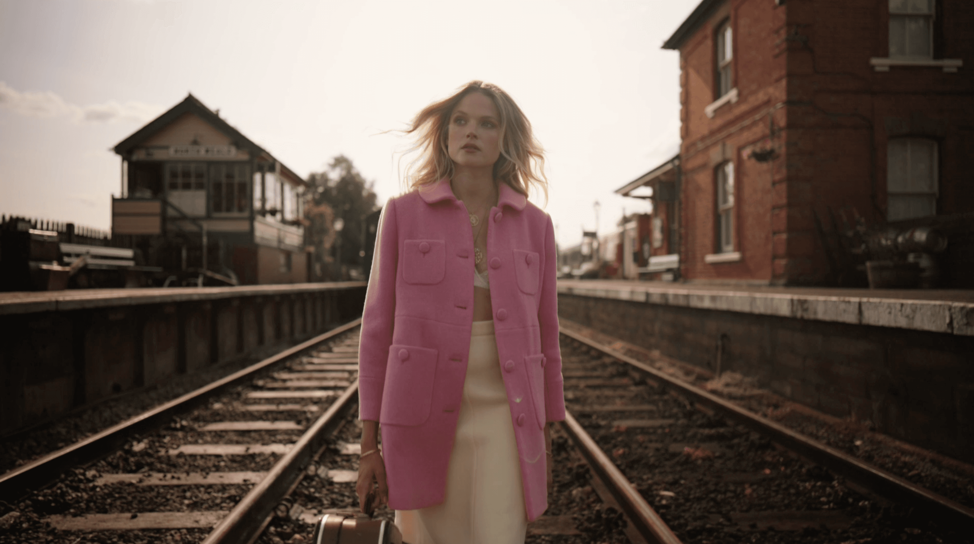 The campaign explores movement, pause and character through a series of evolving looks, using the historic station as a stage for quiet transformation. Our approach prioritised atmosphere over overt narrative, allowing the outfit selections to shift naturally across locations.